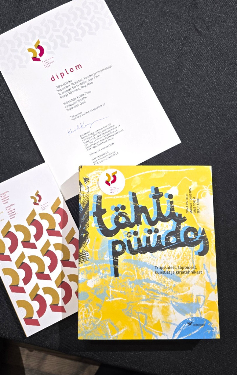 „Tähti püüdes. Triipsudest, täppidest, kunstist ja kirjatehnikast“, koostajad on Edna Vahter, Sirje Torim, Margit Tõnisson, Terje Äkke. Kujunduse autor on Endla Toots ja toimetaja Margit Ross.