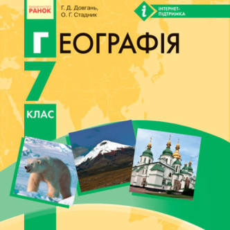 Підручник (автор Довгань Г. Д.) містить обов’язковий обсяг навчального матеріалу, усі необхідні теоретичні відомості й поняття. У ньому наведені програмові практичні роботи та географічні дослідження. Карти, схеми та ілюстрації підручника допоможуть краще засвоїти навчальний матеріал. Електронні додатки: цікава додаткова інформація, навчальні відеоматеріали і тестові завдання для підготовки до узагальнюючого контролю знань розміщені на сайті: http://interactive.ranok.com.ua
