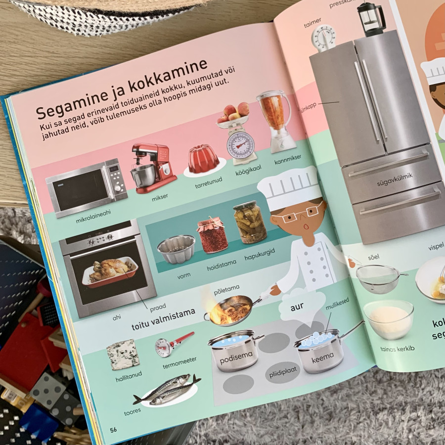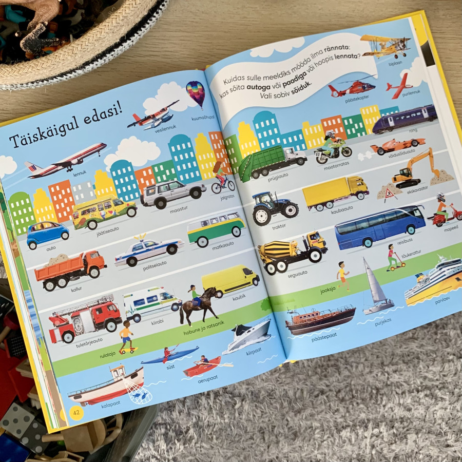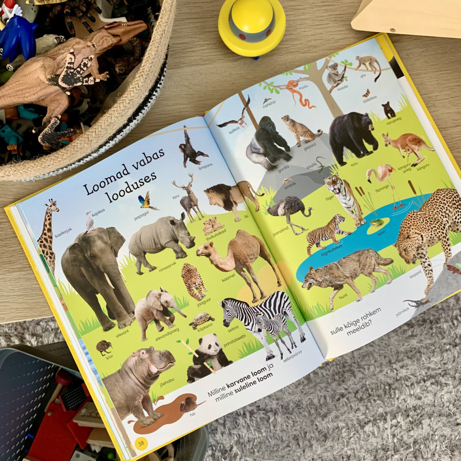 Ühtaegu meelelahutuslikus ja harivas piltsõnastikus on tuhatkond sõna ja pilti, mille toel laiendada koolieelses eas lapse sõnavara ning arendada tema lugemis- ja kirjutamisoskust. Pildikeel on selge ja elulähedane, sest muu hulgas on kasutatud rohkesti fotosid. Igal leheküljel on kümneid igapäevaelus vajalikke nimisõnu ning vähemal määral tegu- ja omadussõnu järgmistel teemadel: minu pere ja sõbrad, loomad ja loodus, tööd ja ametid, muinaslood, talu- ja linnaelu ja palju muud. Peale selle on teemade juures lihtsad küsimused, mis julgustavad rääkima ja arutlema, arendavad tähelepanu- ja mõtlemisvõimet. Raamatus on ka viis lihtsat piltlugu, mis tutvustavad konteksti sobivaid sõnu ja väljendeid ning aitavad mõista loo vestmise ja lausete moodustamise loogikat. Need pakuvad toredat vaheldust avastuslikele, uudishimu ärgitavatele teemalehekülgedele ja arendavad loovust. Näiteks järgneb lemmikloomateemale lugu, milles mänguhimuline koer oma põrkepalli otsib, ja pärast muinasjututeemat saab laps etteantud vormelite toel ise oma loo teha. Etteantud vormelite ja sõnade toel saab laps jutustamisega hästi hakkama ja eduelamus motiveerib aina rohkem avastama ja õppima.