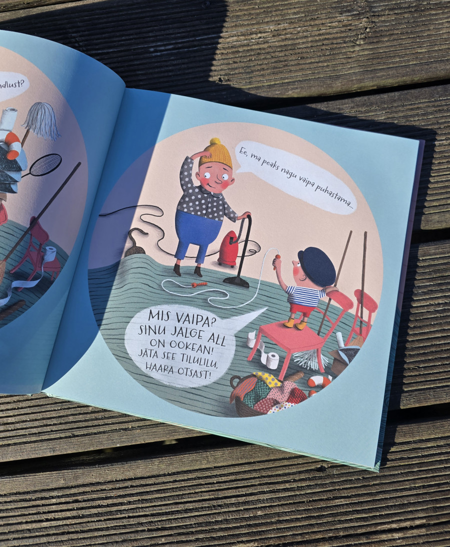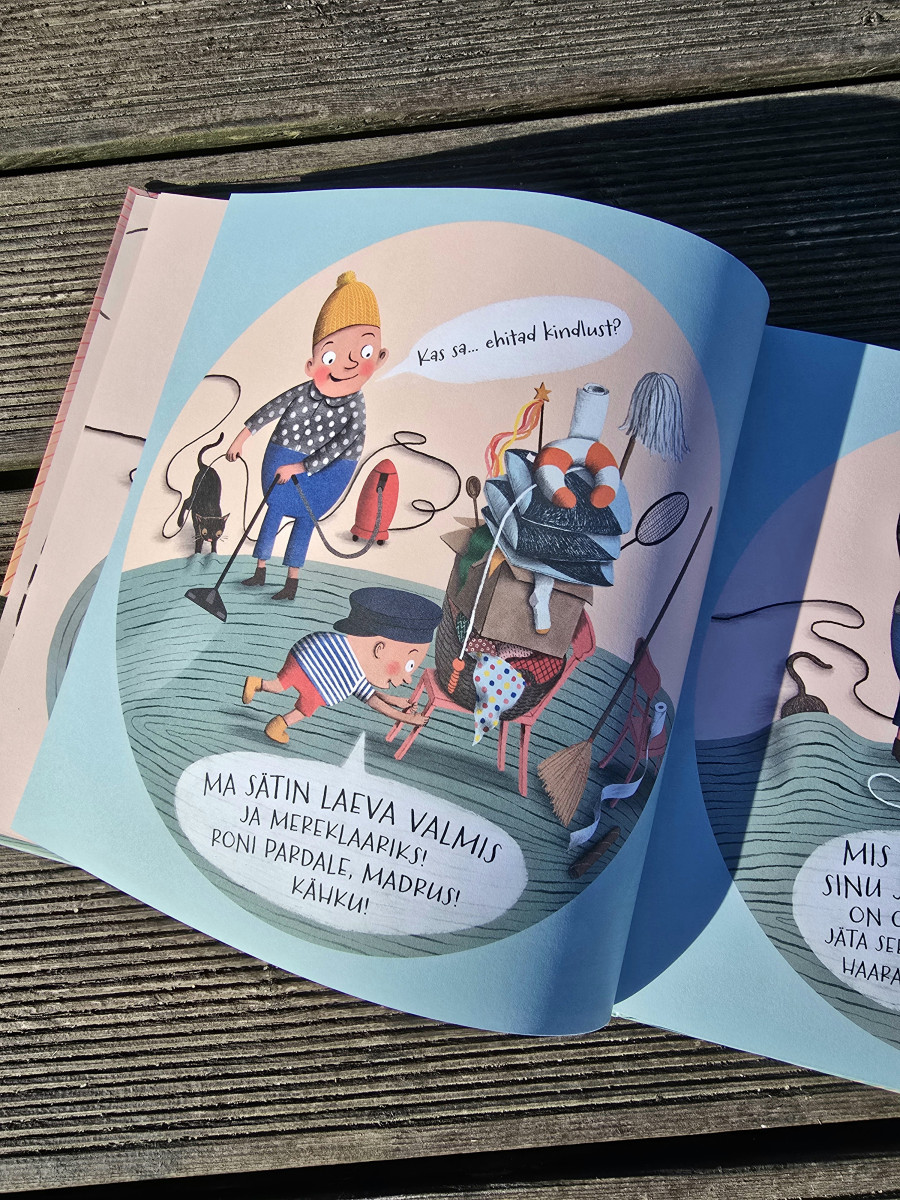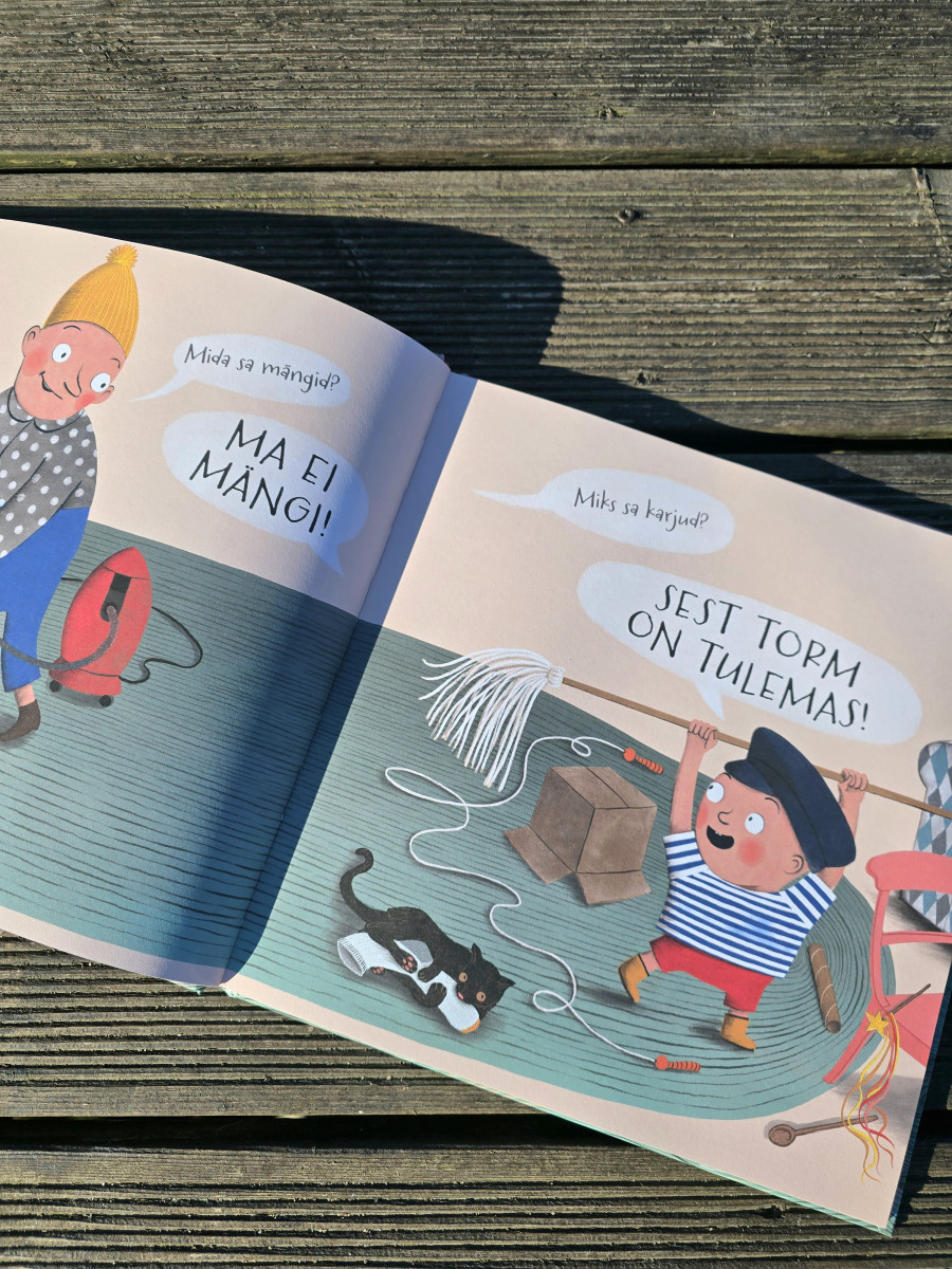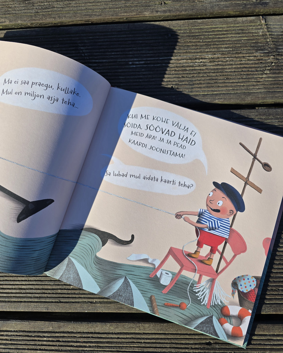 AHOI! KÕIK SEE MEES TEKILE! On aeg heisata purjed ja seilata elutoa vaibal. Lähenev torm paneb meremehed proovile ja kuidas veel haide käest pääseda! Lennuka kujutlusvõimega väike laps ja tema vanem võtavad ette pöörase seikluse – ja seda kodust väljumata.