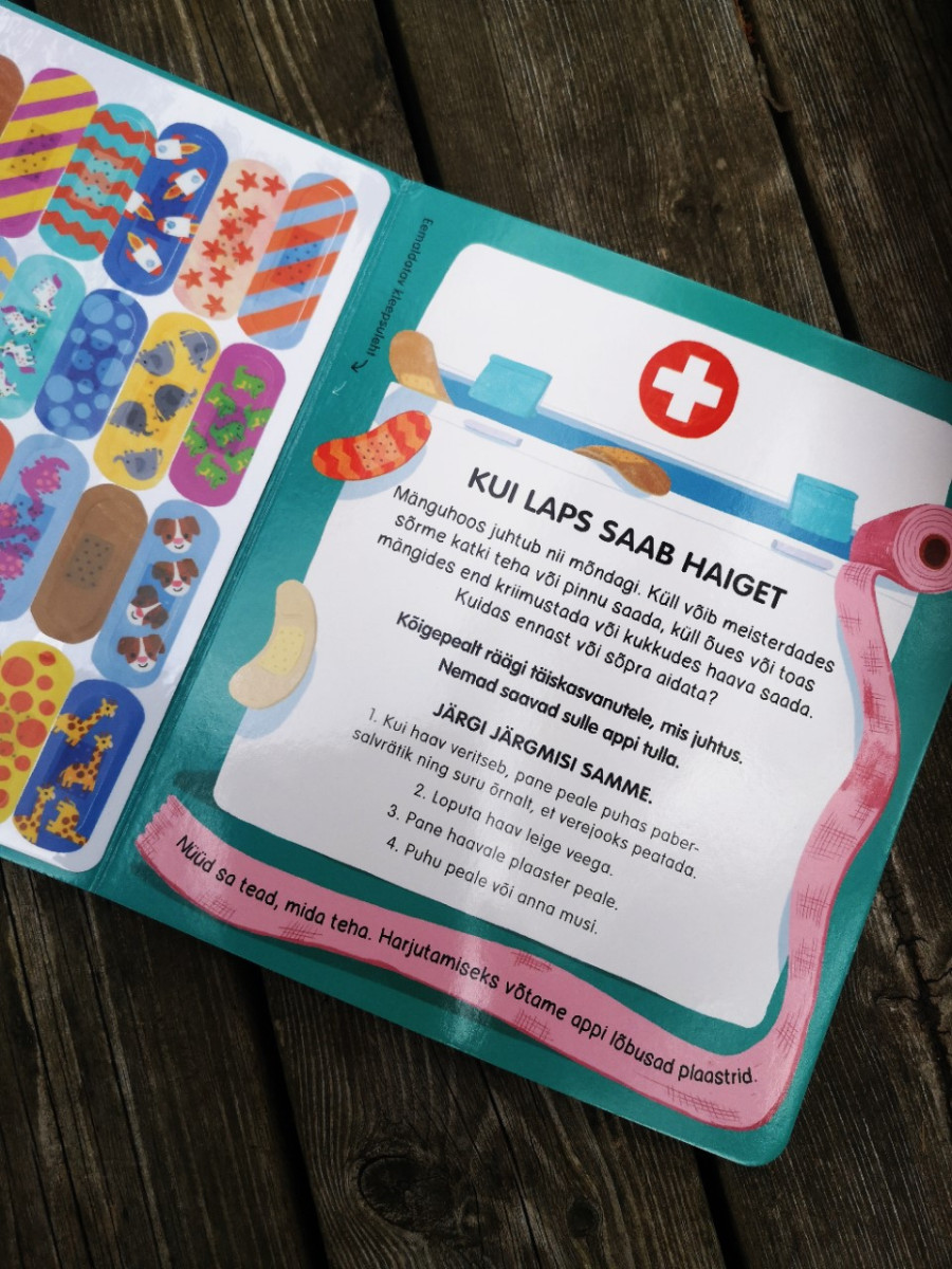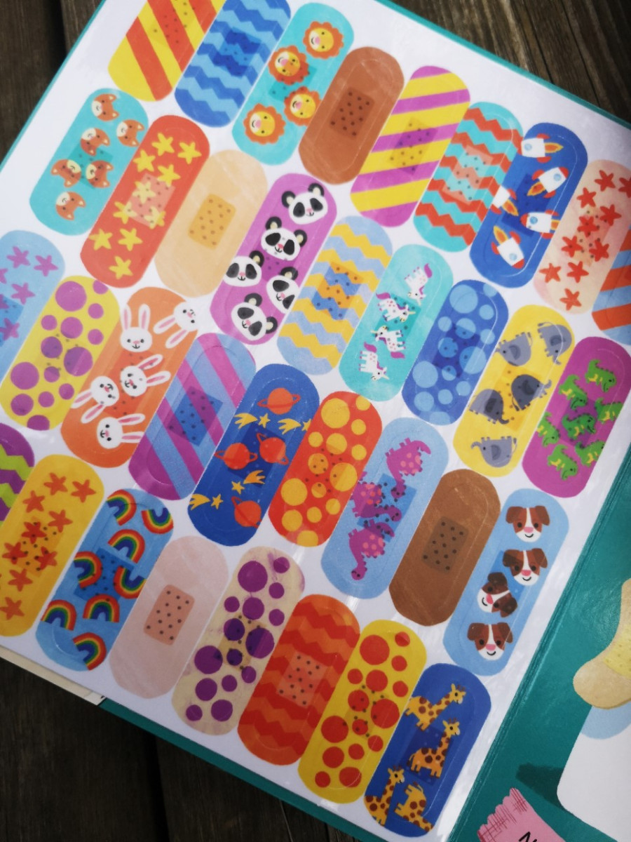 Lõbusate taaskasutatavate plaastrite abil saab laps igal lehel plaastri panemist harjutada.