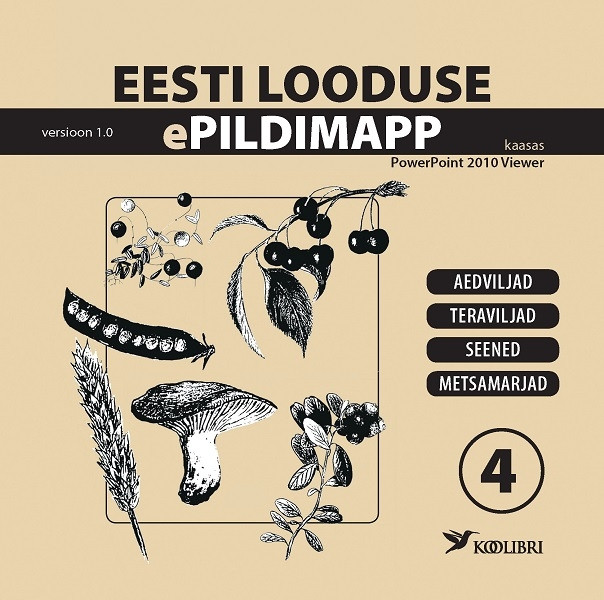 PowerPointi formaadis abimaterjal klassiõpetajale. 4. pildimapis on: kõrvits, kapsas, kaalikas, porgand, kurk, tomat, kartul, sibul, küüslauk, redis, petersell, till, piparmünt, hernes, uba, rukis, oder, nisu, kaer, kirss, õun, ploom, pirn, maasikas, vaarikas, mustsõstar, punanesõstar, karusmari, aroonia, rabarber, põldmari, mustikas, pohl, jõhvikas, riisikas, kukeseen, puravik, pilvik, murumuna, kärbseseen, tindik, kännuseen