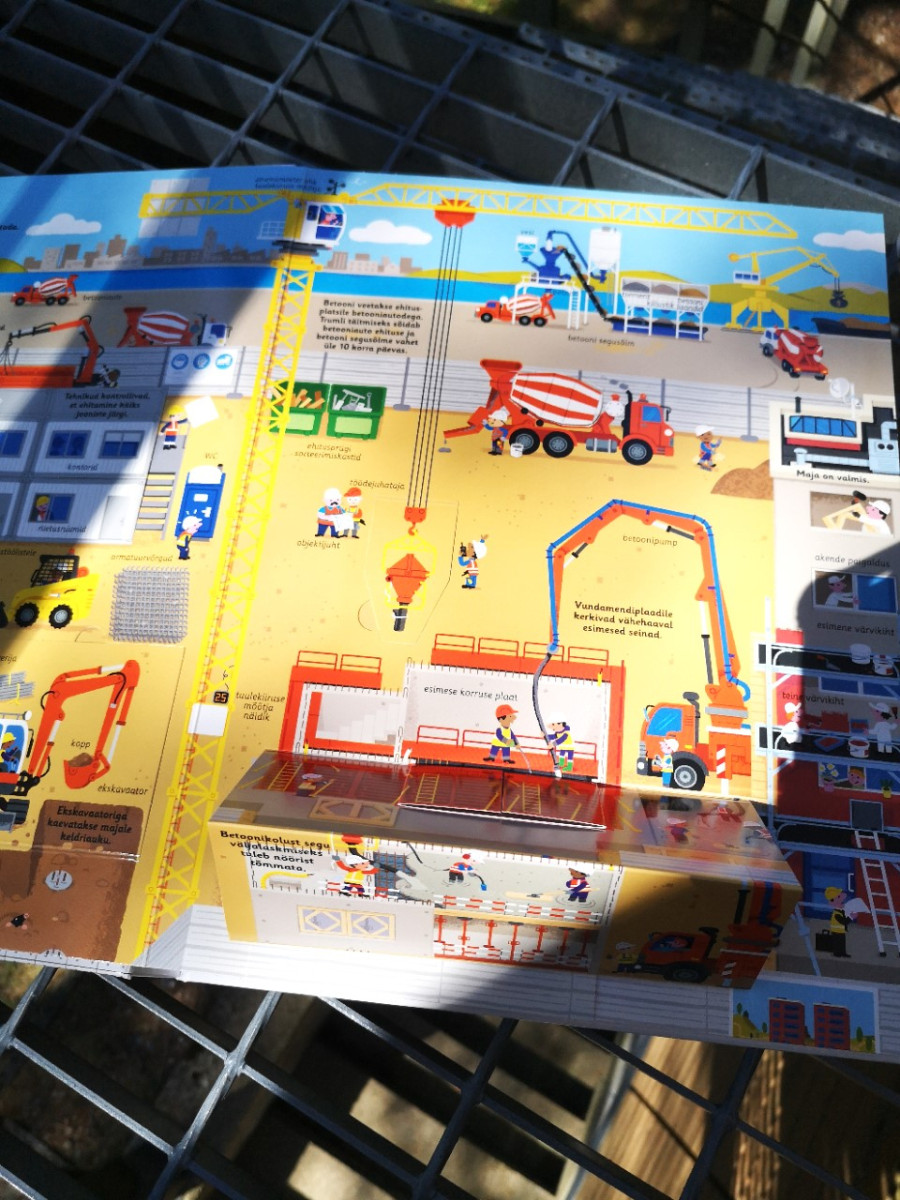 Paljude klappide ja liikuvate piltidega raamatus on üksikasjalikud joonistused ja põnevalt esitatud teave. Siin saab uurida, kuidas valmib kõrghoone, sild, maantee ja metroo või lennuk, laev, lõbustuspark ja tsirkusetelk. Ehitusplatsil töötavad kraanad ja buldooserid, maanteehitusel laotusmasin ja pinnasekoorija ning tunnelit kaevab võimas tunnelipuur. Väikesele tehnikahuvilisele pakub raamat rohkelt avastamisrõõmu.