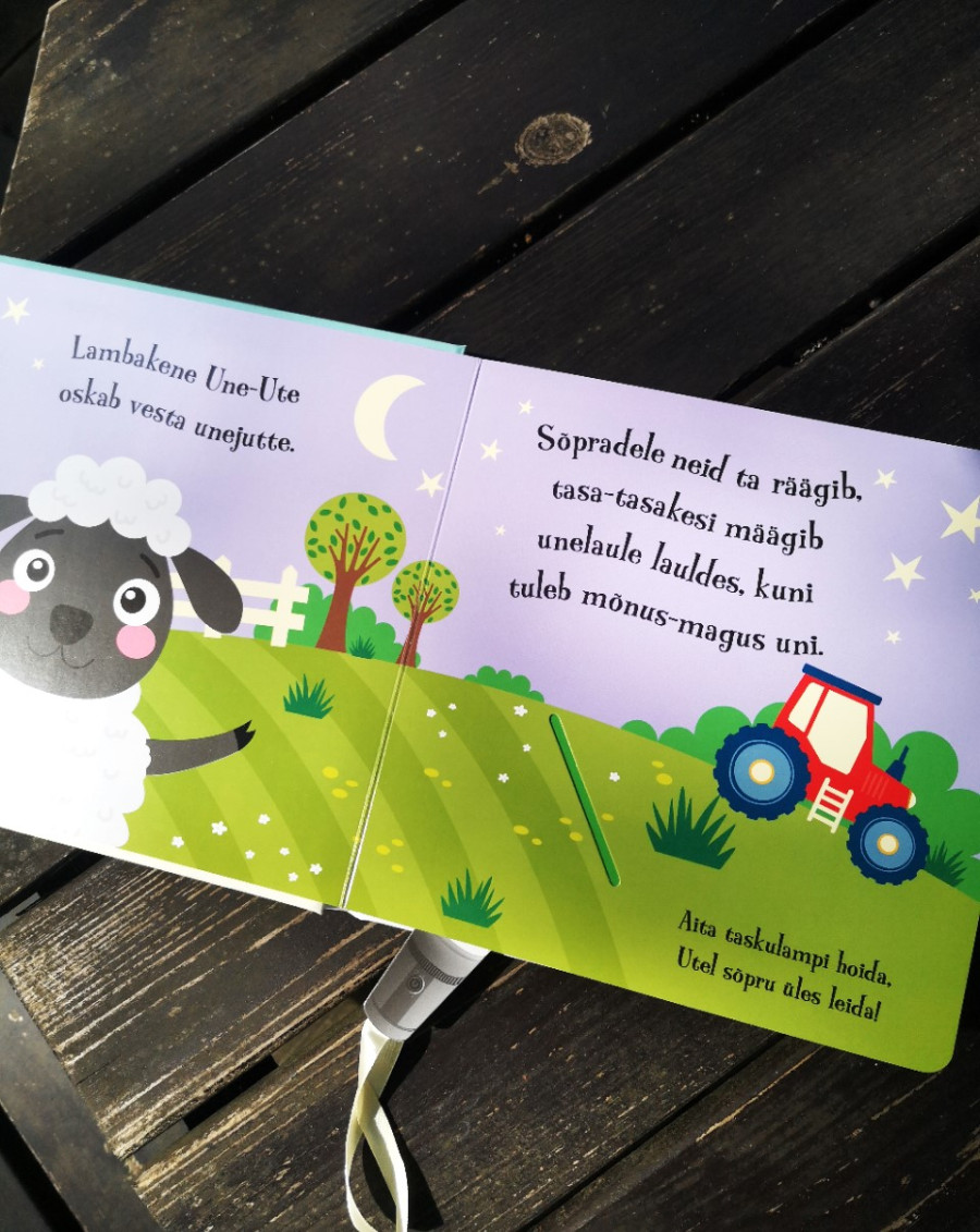 Lihtsate riimidega pappraamatut on tore lugeda enne magamaminekut. Lammas Une-Utel on sõbrad, kellele ta unejutte räägib ja unelaule laulab. Taskulamp raamatu vahel aitab üles leida kõik Une-Ute sõbrad, kellel on aeg magama minna. Pista taskulamp lehekülje vahele ja näedki, kes pimedas peidus on.