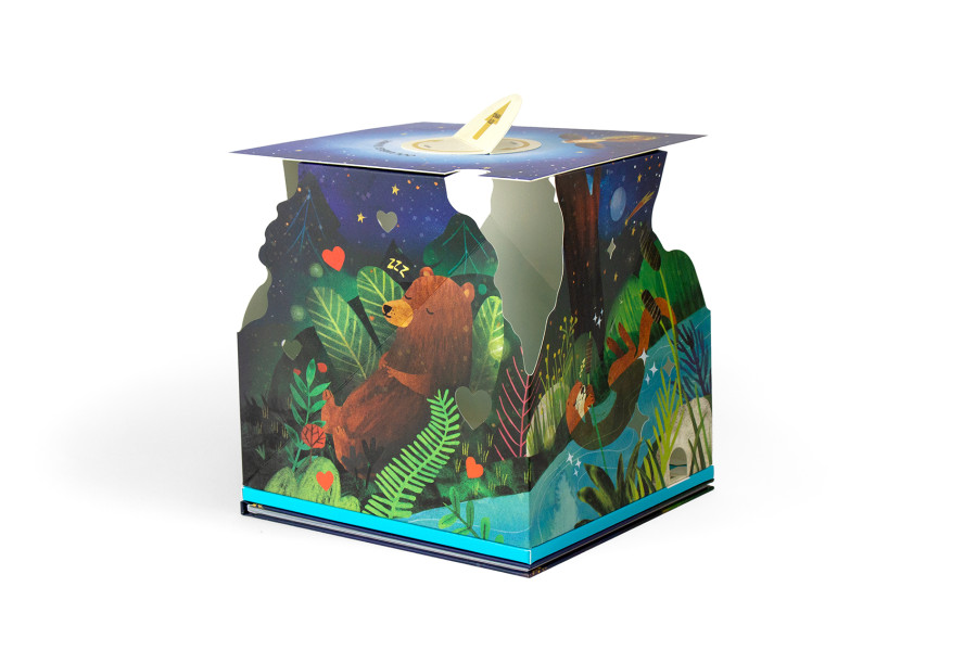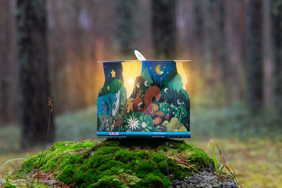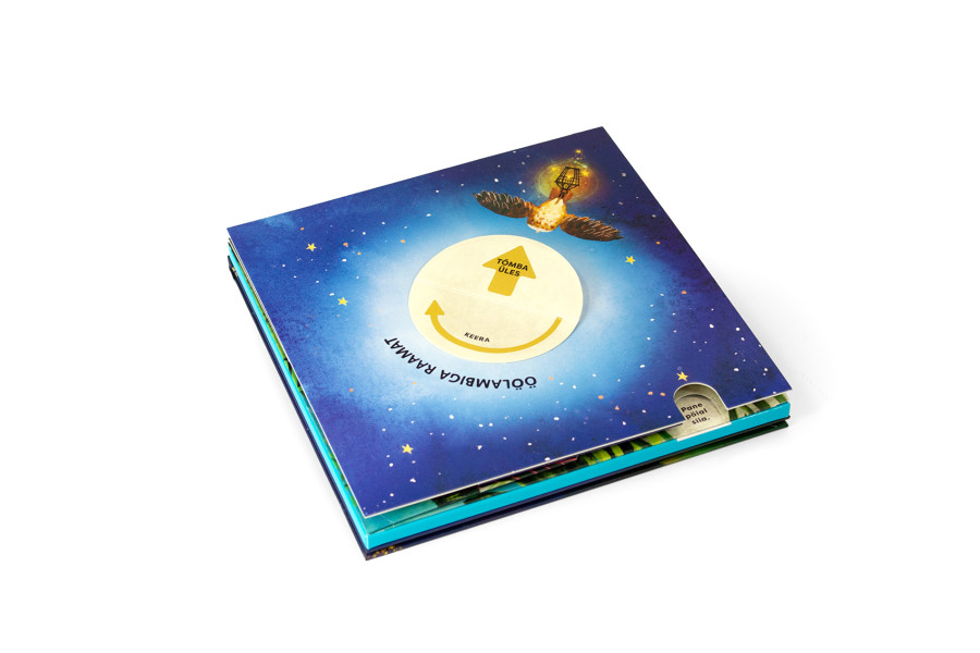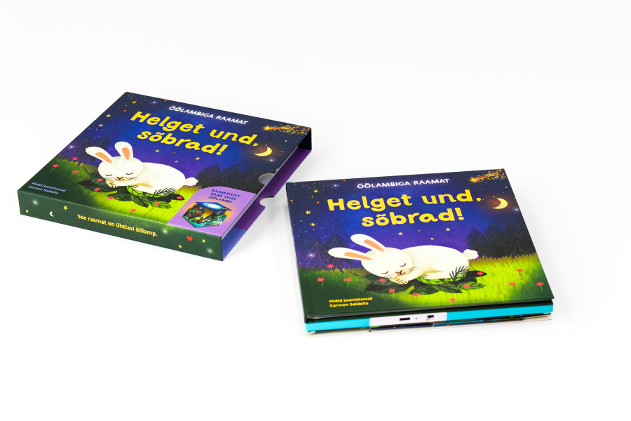 Raamat on pakendatud karpi, mille saab muuta laternaks. Laternat saab laadida USB-C kaabliga (pole kaasas).