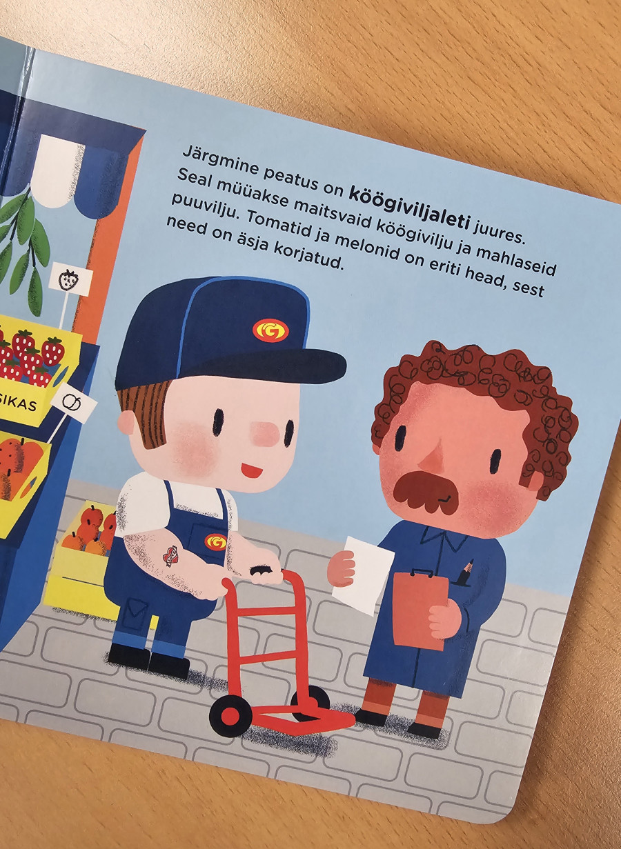 Kes soovib värskeid tomateid, maitsvat juustu või saiakesi? Vaata, kuidas tubli Kalle hommikul kaubad autosse laob ning kõik vajaliku kauplustesse toimetab. Sõida vahva kaubaautoga pagariärisse, turule või lihapoodi ja paiguta õiged kaubad (pusletükid) õigetele lettidele.
