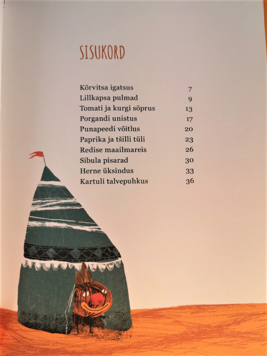 Tädi Tiia aias elavad koos lillkapsad, redised, herned, porgandid ja paljud teised köögiviljad – kes põllul, kes kasvuhoones, kes kompostihunnikul. Nagu ikka ühes korralikus aias, ei puudu sealt ka kartul, kes oma tarkuse ja tasakaaluka olekuga on justkui loodud valitsema. Köögiviljad erinevad üksteisest nii välimuse kui ka iseloomu poolest, nad tülitsevad ja lepivad, igatsevad ja pettuvad. Jah, elu kartuli kuningriigis pole alati lihtne, aga kõiki neid värvikaid tegelasi ühendab suur unistus saada kord söödud!