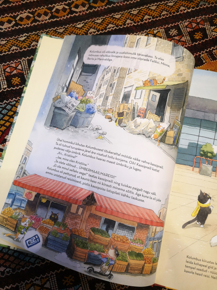 Kass Kolumbus elas täitsa tavalist tänavakassi elu, ainult et kõik oli kuidagi liiga rahulik. Aga ennäe! Üks võluv kassipreili käis turul oste tegemas ning tema kotist kukkus välja lotopilet. Ja korraga tulid Kolumbuse ellu suured seiklused! Algas ümbermaailmareis, mille käigus Kolumbus avastas põnevaid maid, kus elavad ... kassid! MJÄU!
