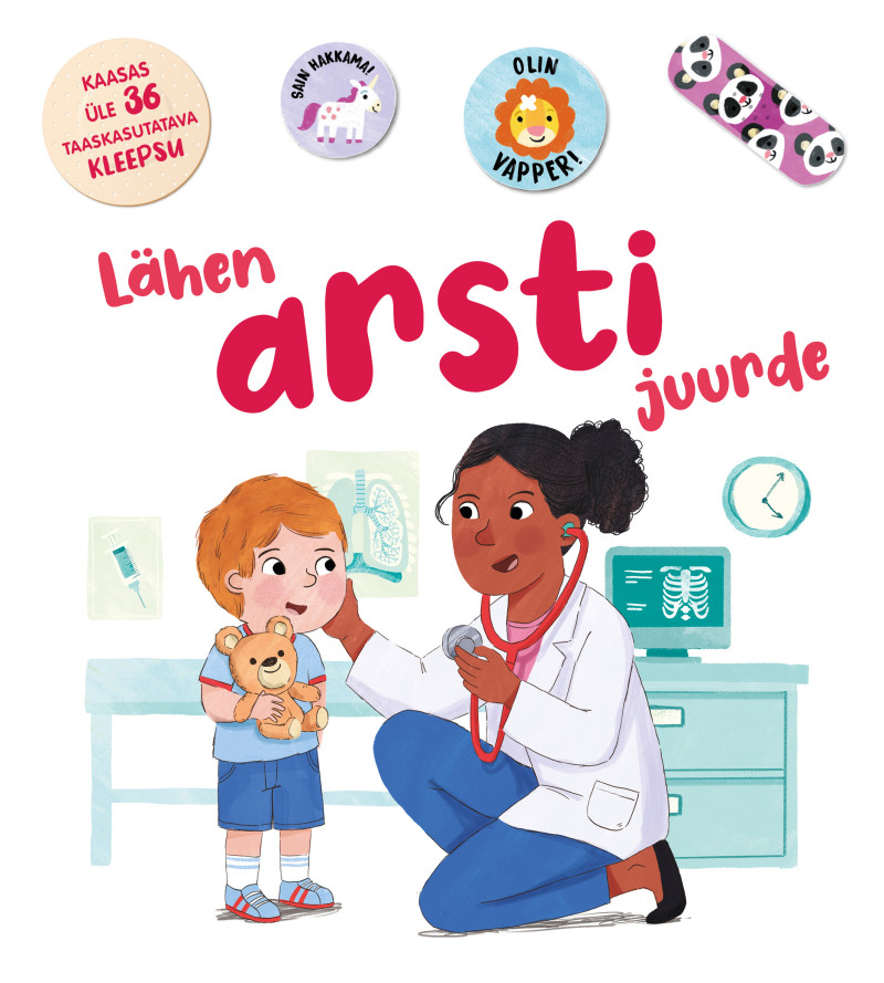 Laps saab raamatut lugeda ja uurida, mida teeb arst, kui kõht valutab või otsa ees on muhk. Lõbusate kleepsude abil märgib laps enda vaprust ja tublidust. Raamat aitab vabaneda hirmust arstikabineti ees.