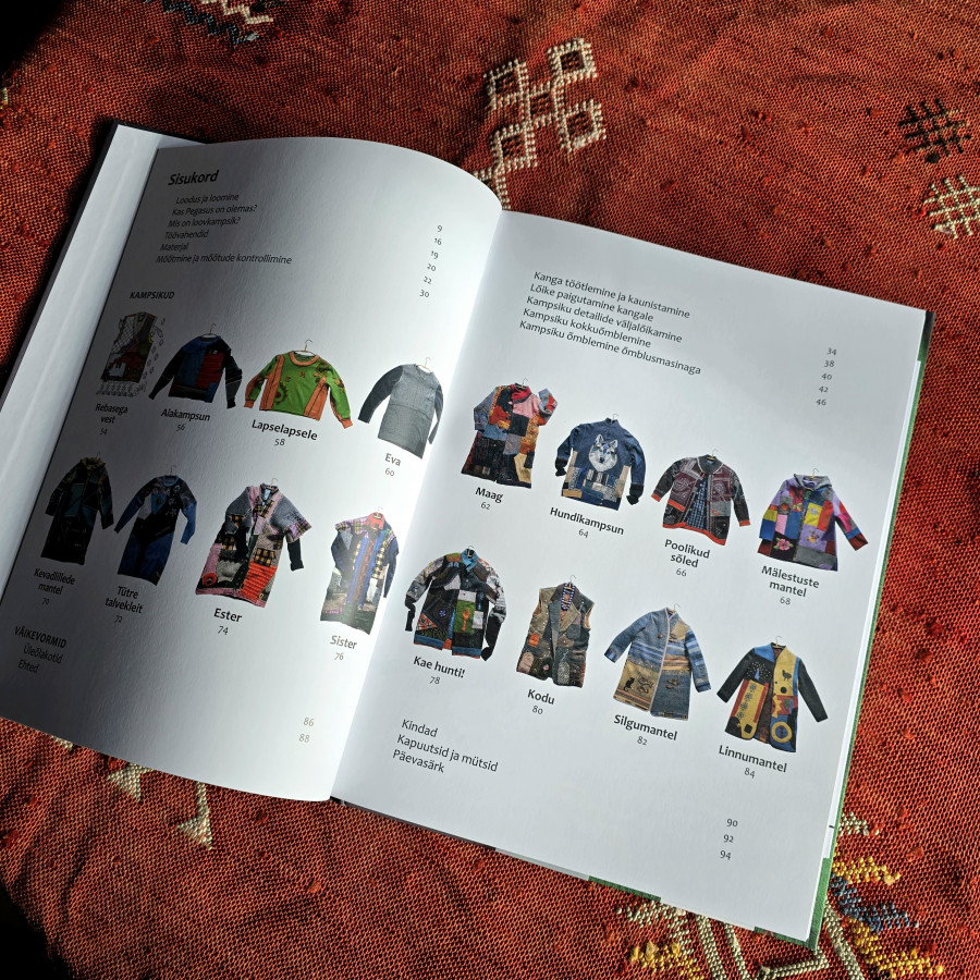 Raamatust leida praktilised juhendid, kuidas materjali valida, vanutada, lõigata ja kokku õmmelda, tikkida ja kaunistada. Lõikelehel on mitmele suurusele mõeldud lõige ja mõned mustrid. Kõige põnevam osa on aga pildid kampsikute kursustel tehtud töödest ja nende loojate kogemuslood. Siit saab palju inspiratsiooni ja ideid oma kampsuni alustamiseks.