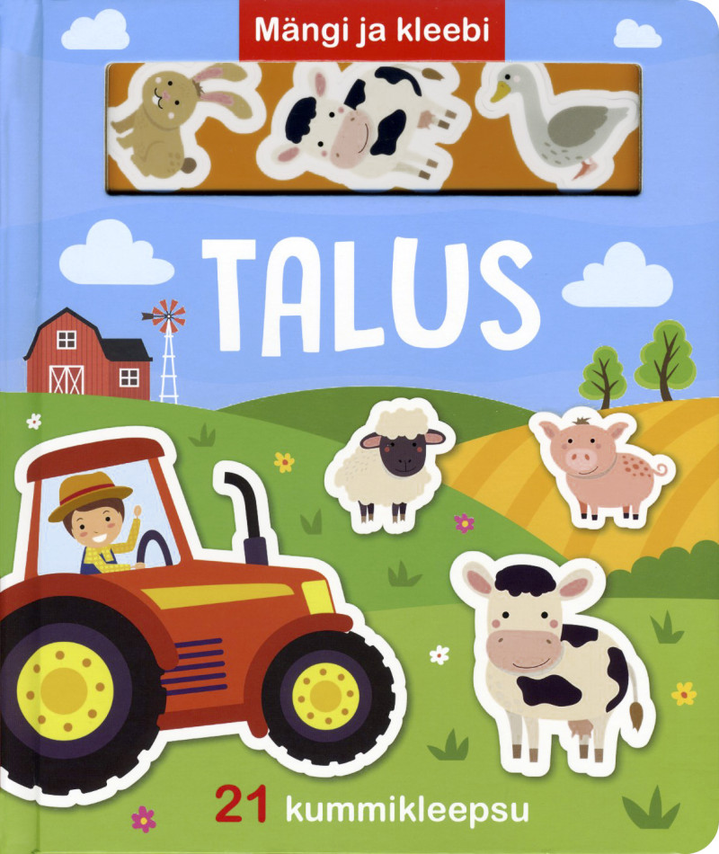 Saa tuttavaks armsate taluloomadega karjamaal, laudas või hoovis ning mängi 21 kummist loomakleepsuga. Kummikleepse saab kasutada palju kordi ning nendega võib mängida ka mujal kui raamatus.