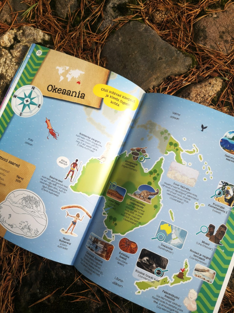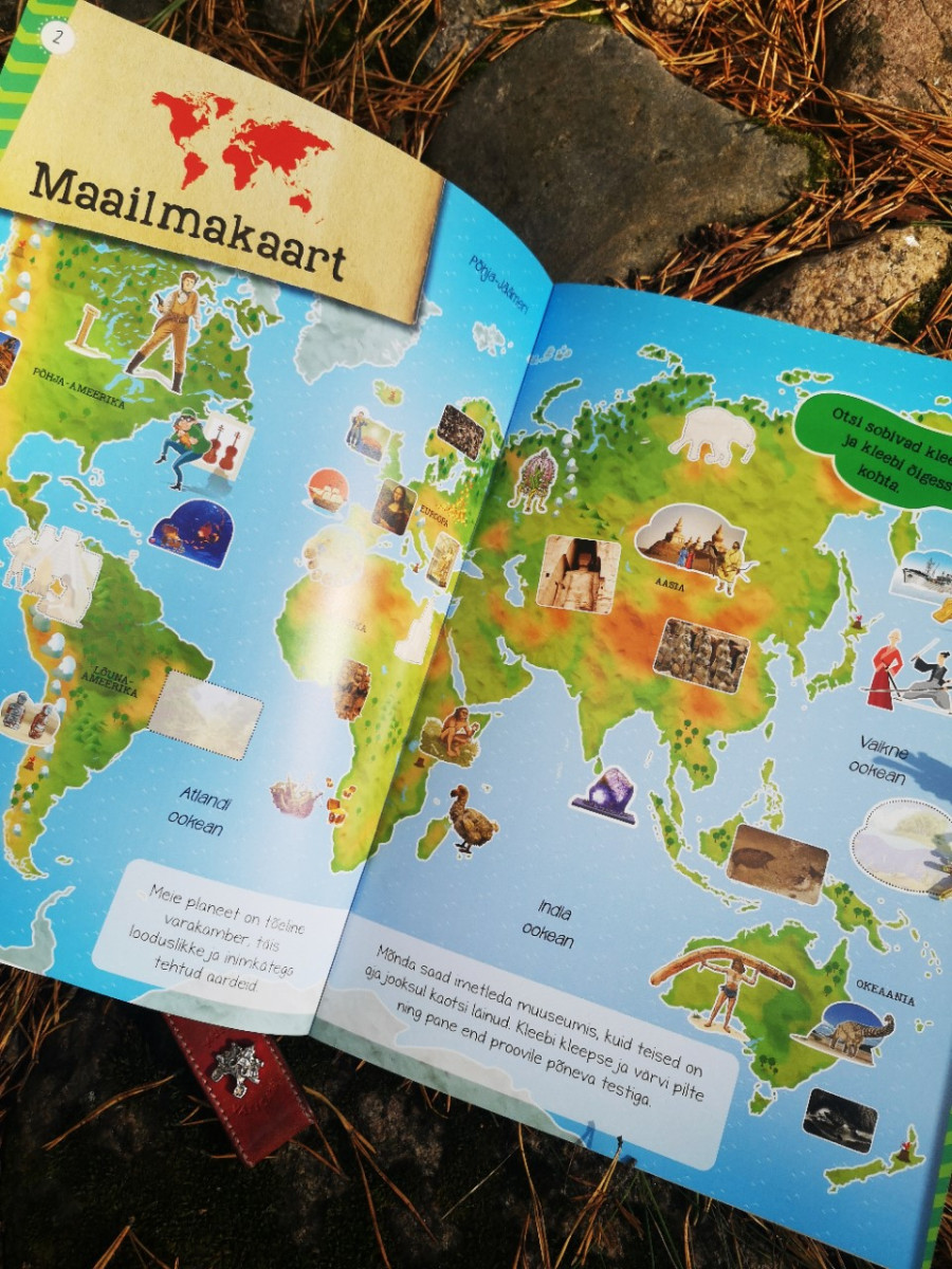 Kaunilt illustreeritud atlas tutvustab põnevaid aardeid ja huvitavaid paiku kogu maailmast. Lisaks on siin suur maailmakaart ning hulk vahvaid kleepse.