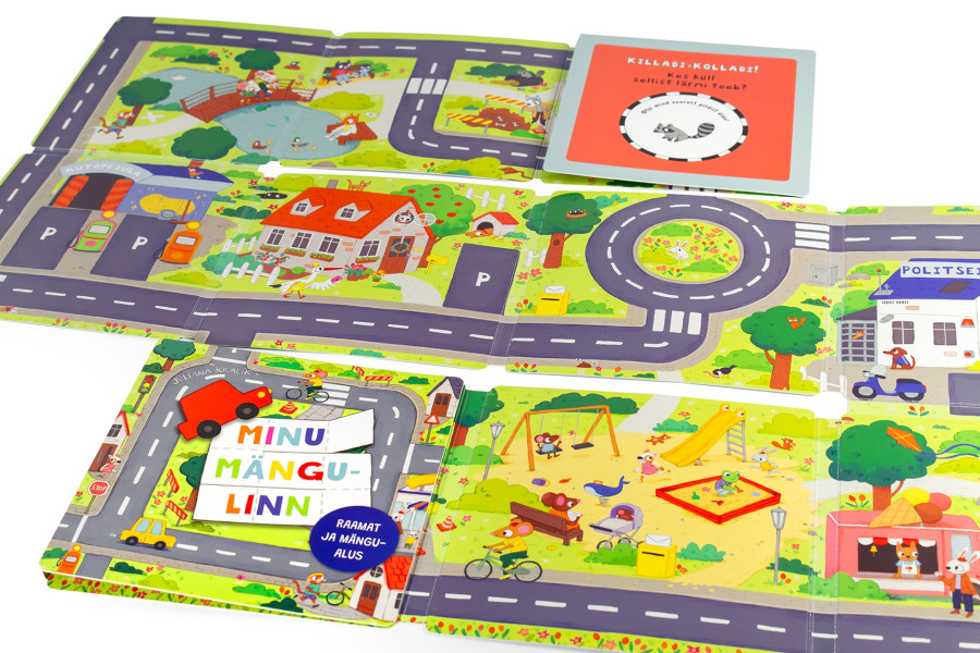 Vahva raamatu saab mängulinnaks lahti voltida ja siis mööda tänavaid ringi sõita. Aluse teisel küljel olevad ülesanded lasevad suurelt pildilt erinevaid tegelasi ja tegevusi otsida. Mängualus pakub erinevaid võimalusi mängimiseks, arendab fantaasiat ja käelist osavust.
