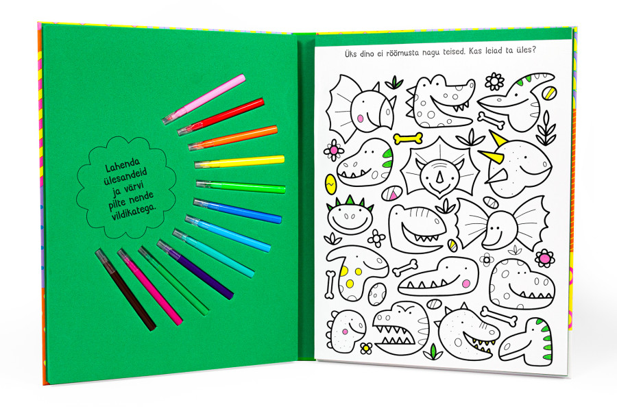 Üle 30 lõbusa ülesande, mängu ja värvimispildiga tegelusraamatust leiad tegelastena nii printsesse kui ka piraate, loomi ja sõidukeid, rääkimata dinodest ja ükssarvikutest.