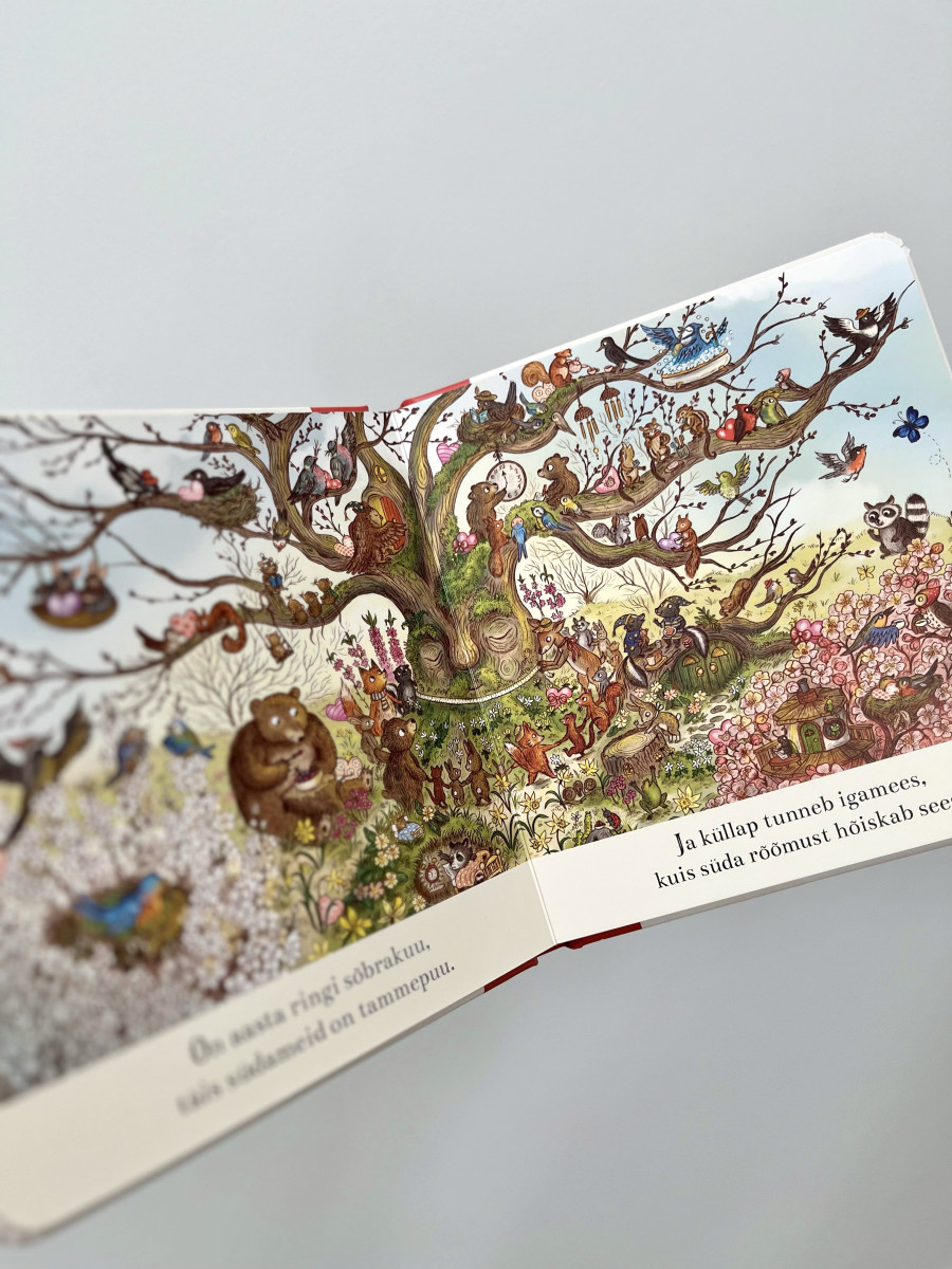 Kõige väiksematele mõeldud pappraamatu aluseks on Rachel Piercey ja Freya Hartase „Mõmmisalu lood. Vana tamme sünnipäev“ (eesti keeles ilmunud 2023), milles on imekspandava leidlikkusega lapsele atraktiivsesse vormi ühendatud ilu- ja aimekirjandus ning mida kannab aktuaalne loodushoiu idee.