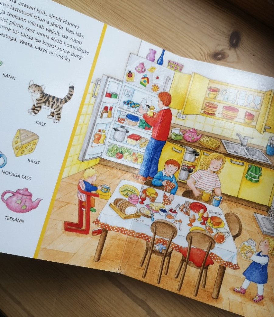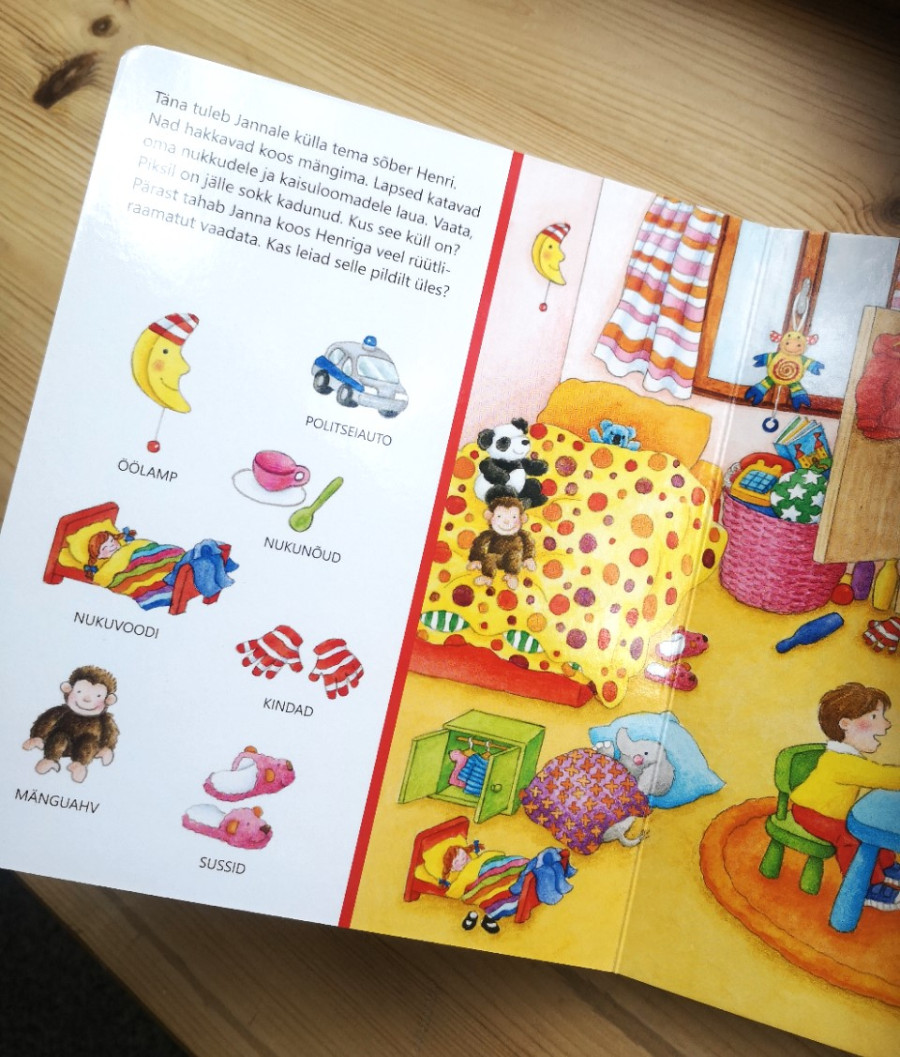 Janna käib lasteaias, aga lisaks sellele käib ta ka poes, mänguväljakul, ujumas, loomaaias, turul ja arsti juures. Igal pool on palju põnevat uudistada. Lapse igapäevaelu kujutavatelt piltidelt saab otsida toredaid väikesi detaile ning pildi kõrvalt õppida uusi sõnu ja mõisteid.