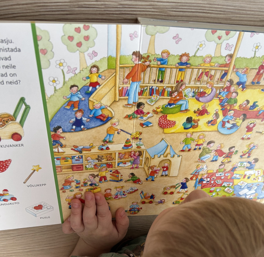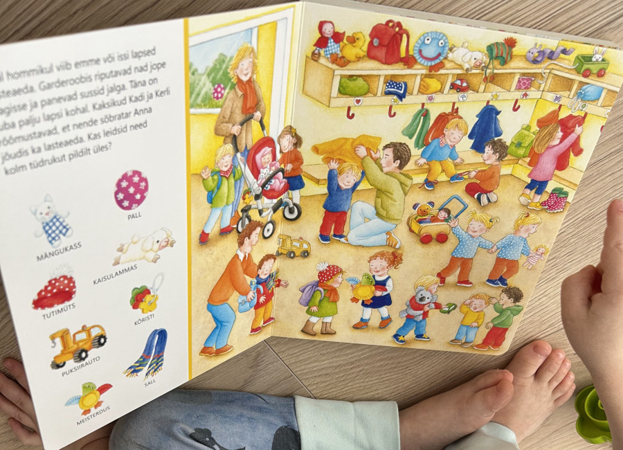 Igal hommikul lähevad lapsed lasteaeda. Seal ootavad neid mängukaaslased ja palju põnevaid tegevusi. Koos mängitakse, õpitakse, joonistatakse, meisterdatakse, lauldakse, tehakse muusikat ja teatrit, käiakse väljasõidul ja aiapeol. „Otsi ja uudistaˮ sarja raamatud arendavad lapse tähelepanuoskust ja sõnavara. Piltide kõrval toodud sõnu saab ise lugeda ja need asjad suurelt pildilt üles otsida.