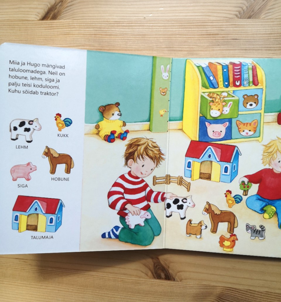 Kuidas Miia ja Hugo oma päeva veedavad? Vaatame, millega lapsed mängivad ja mida nende pere koos teeb. Kas lapsed saavad kodutöödes aidata? Piltidelt saab otsida kõrval välja toodud asju ja nende alt ise sõnu kokku lugeda. Vahva pildiraamat pakub lapsele palju uurimist ja uudistamist.