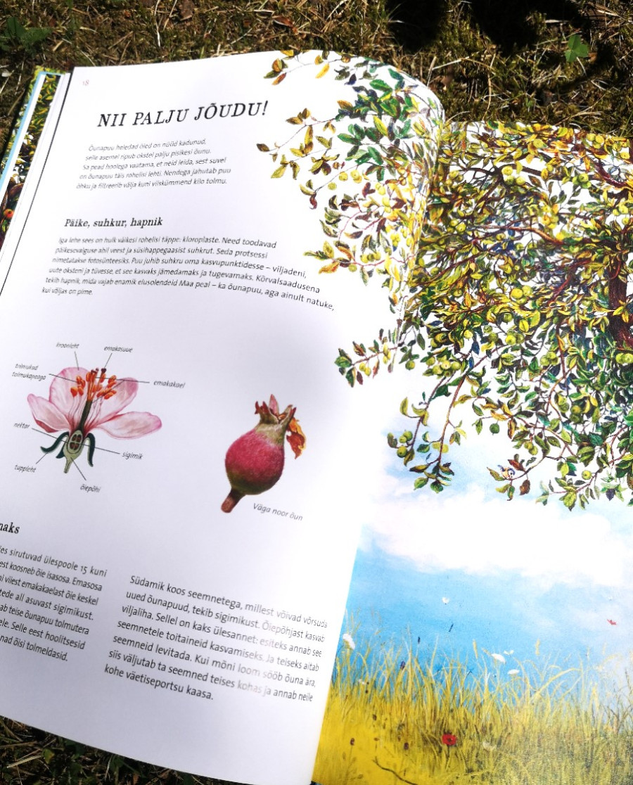 Kaunis raamat võtab sind kaasa põnevale rännakule läbi õunapuuaasta: heleroosadest õitest kevadel kuni raagus oksteni talvel. Saad teada, kuidas puu muutub, ning tutvud paljude loomadega puu otsas ja puu ümber.