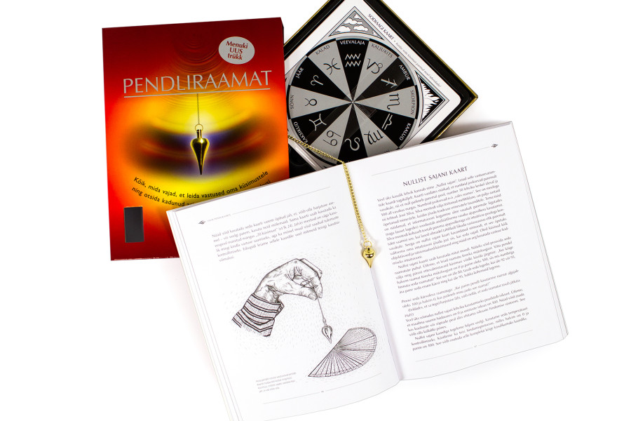 Komplekti kuulub 128-leheküljeline käsiraamat, nööriga pendel ja valik ennustamis-, astroloogilisi ja päikesemärkide kaarte. Võime võtta pendlikomplekti kui tööriista, mõnusat ajaviidet või võimalust ennast sügavamalt tundma õppida.
