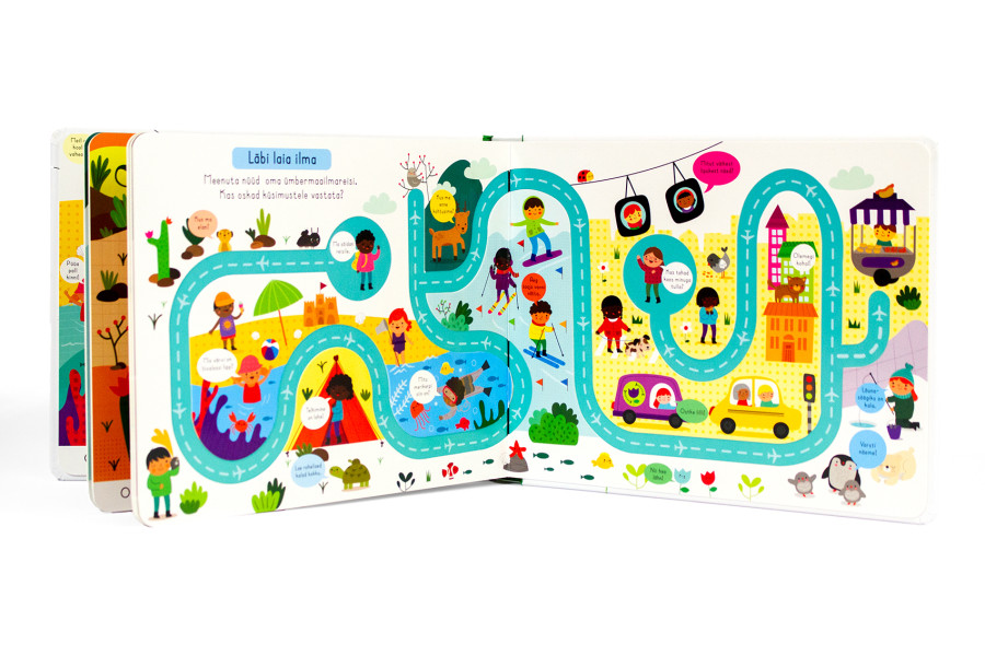 Vahva interaktiivse raamatu abil saab väikelaps õppida uusi sõnu ja tegevusi. Sõrmega mööda soont vedades saab väike raamatuhuviline reisida läbi kogu maailma, näha erinevaid paiku ja tegelasi. Värvikas ja pildirohke raamat arendab sõnavara, mõtlemis- ja jälgimisoskust, samuti fantaasiat.
