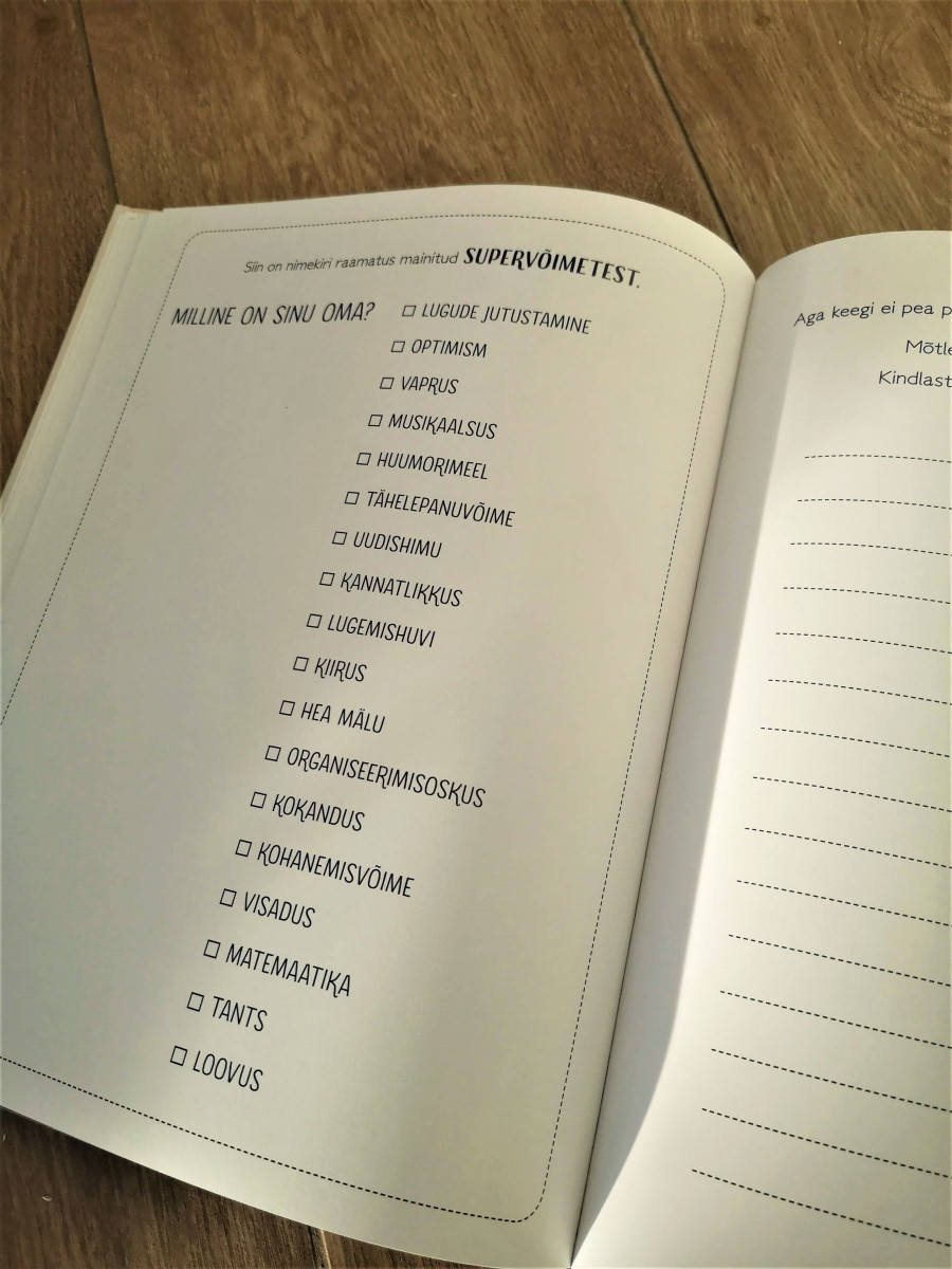 Meil kõigil on omadusi ja oskusi, mis teevad meid eriliseks. Mõni oskab hästi süüa teha, teine armastab üle kõige tantsimist, kolmandal on silma looduses toimuva jaoks, neljas naudib matemaatikaga tegelemist. Supervõime ei tähenda oskust lennata või mitmetonniseid raskusi kanda. On ka muid võimeid, mis aitavad meil elus paremini hakkama saada ja endale sõpru leida.