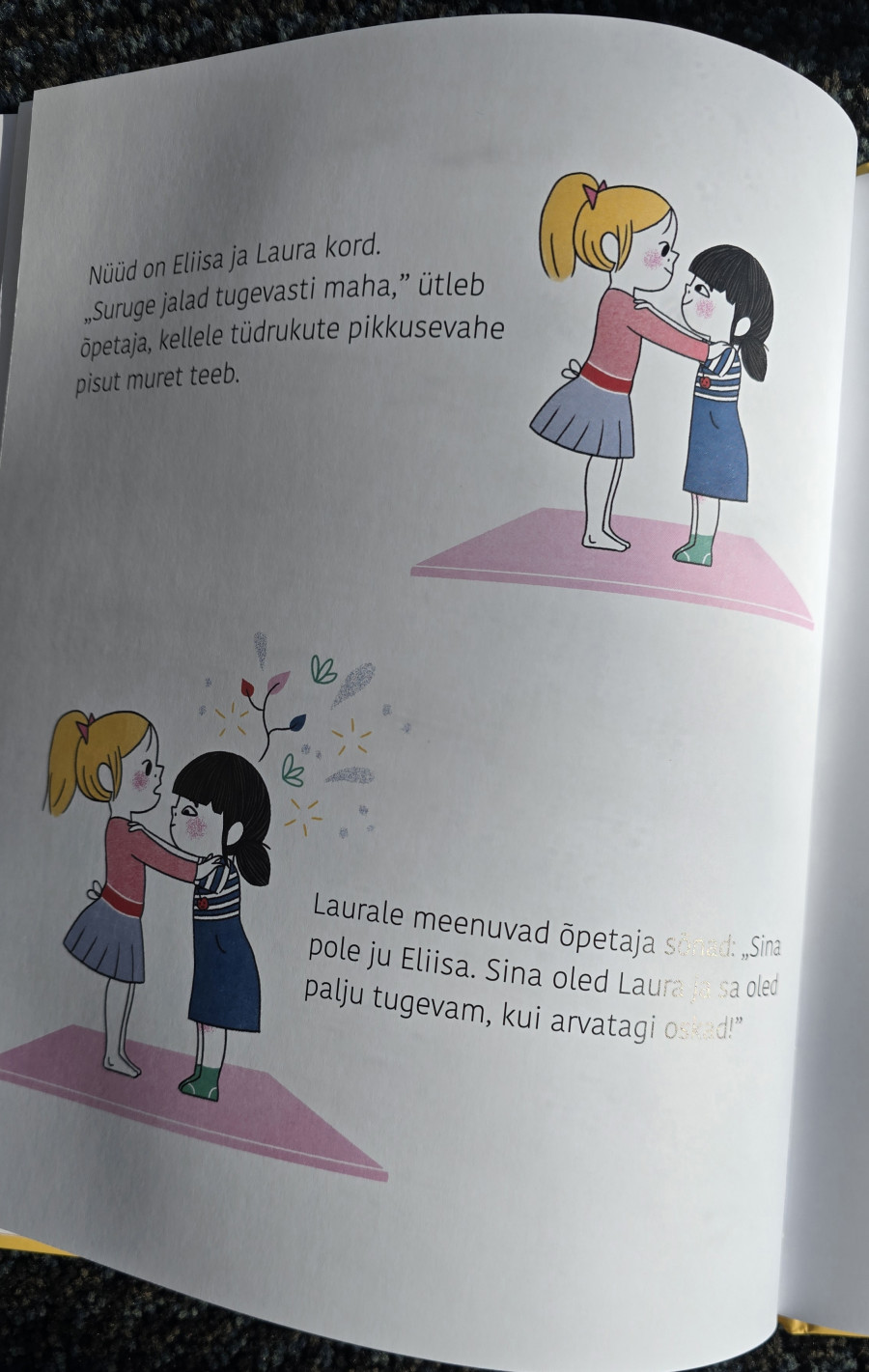 Raamat räägib loo Laurast, kes on väga ebakindel ja kardab uusi asju proovida. Ta tardub iga kord paigale, kui tal rühmas midagi teha palutakse. Sageli laseb ta oma sõbral enda eest otsustada. Ent ühel päeva külvab õpetaja Laura südamesse enesekindluse seemne. Ta paneb Laura uskuma, et Laura saab hakkama, ja julgustab teda proovima, mis omakorda viib eduelamuseni. Sageli tärkabki lapses enesekindlus siis, kui ta avastab, et on mingis valdkonnas eriti hea.