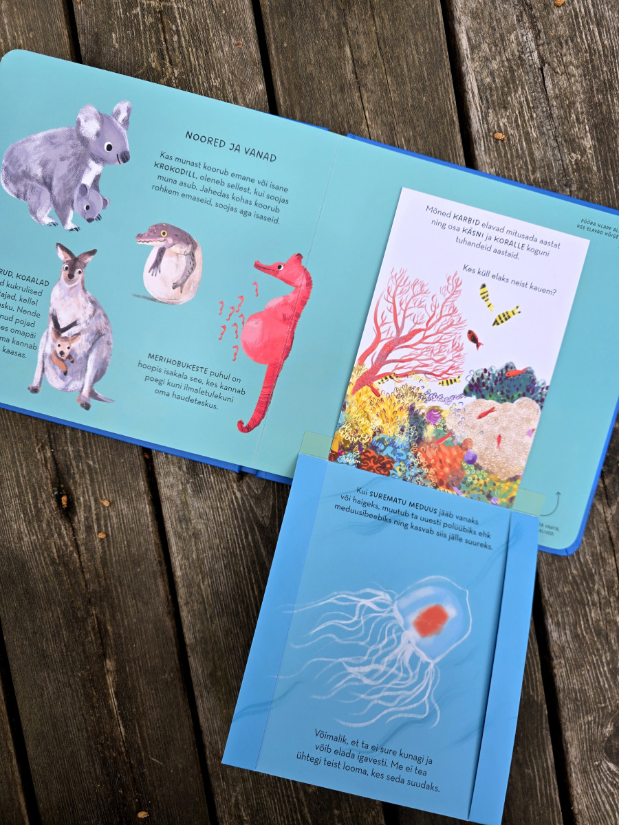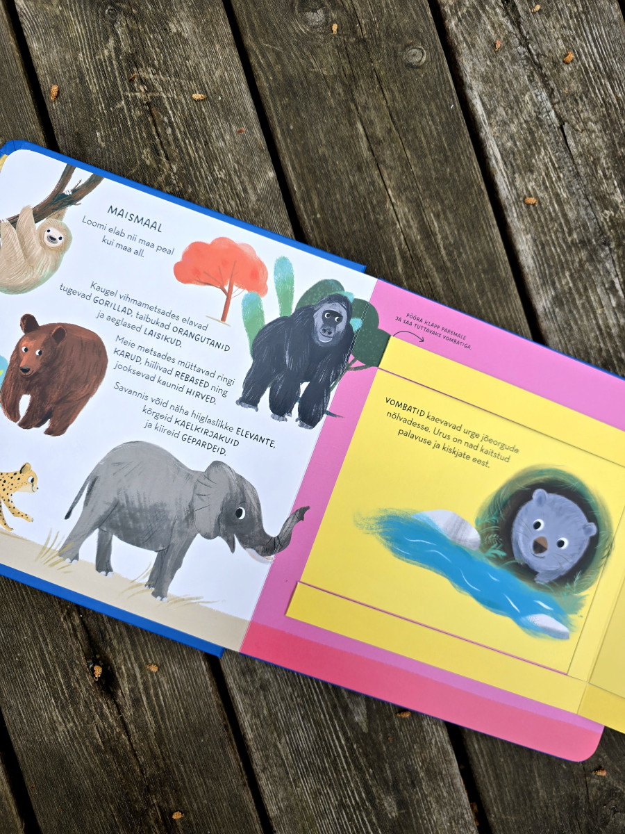 Millised loomad elavad kõige vanemaks? Kuidas on loomad kohastunud äärmusliku palavuse või pakasega? Kes on osavaimad lendajad, kes parimad ujujad? Vahvate joonistustega raamatust saab laps tutvuda meie planeedi imeliste asukatega. Leidlikult kahele poole avanevate klappide alt on põnev küsimustele vastuseid otsida ja saab teada poole rohkem!
