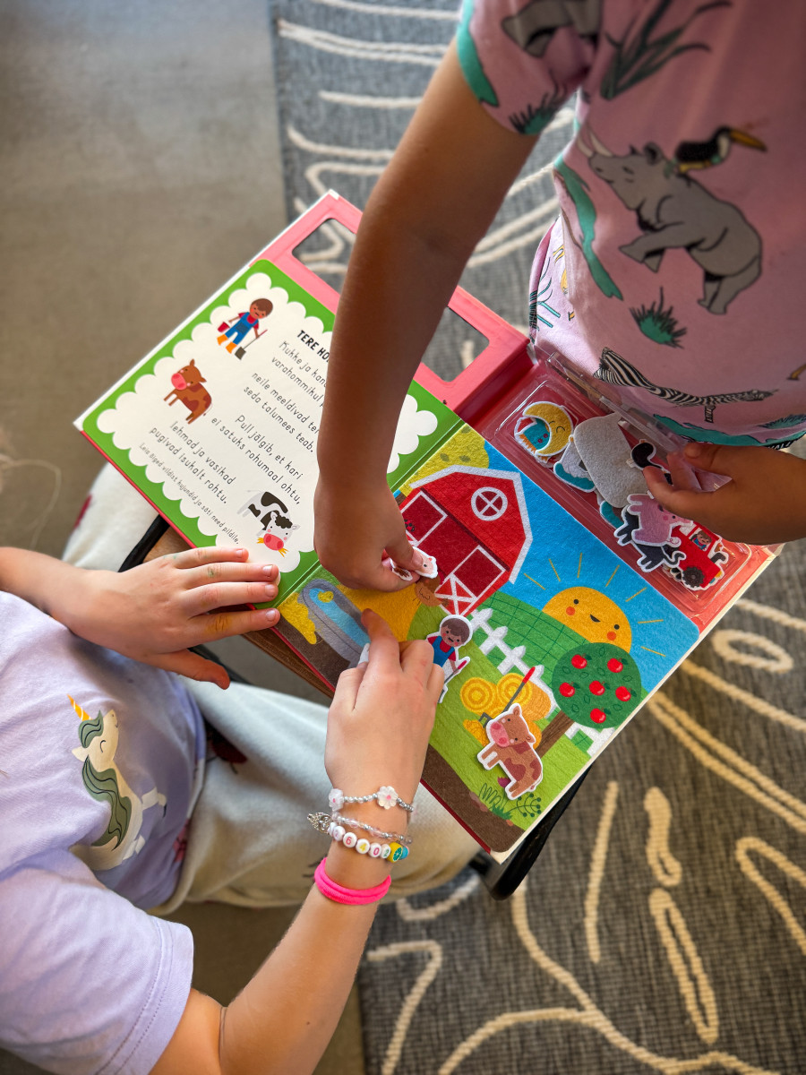 Tore interaktiivne raamat viib meid ringkäigule läbi taluelu. Lõbusad värsid kirjeldavad nii põllutööd kui pidupäevi, askeldamist õues ja puhkust mõnusas soojas toas. Lugemise ajal saab laps sättida vildist tegelasi ja kujusid värvilisele taustale. See tegevus arendab mõtlemist ja fantaasiat, samuti käelist osavust.