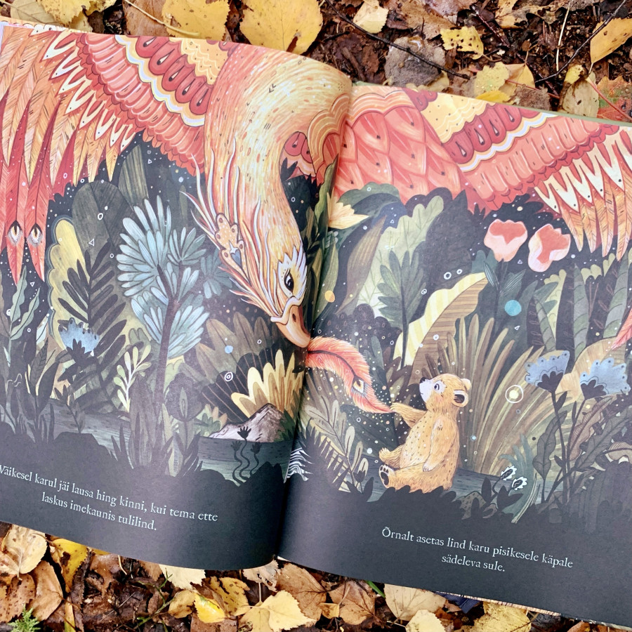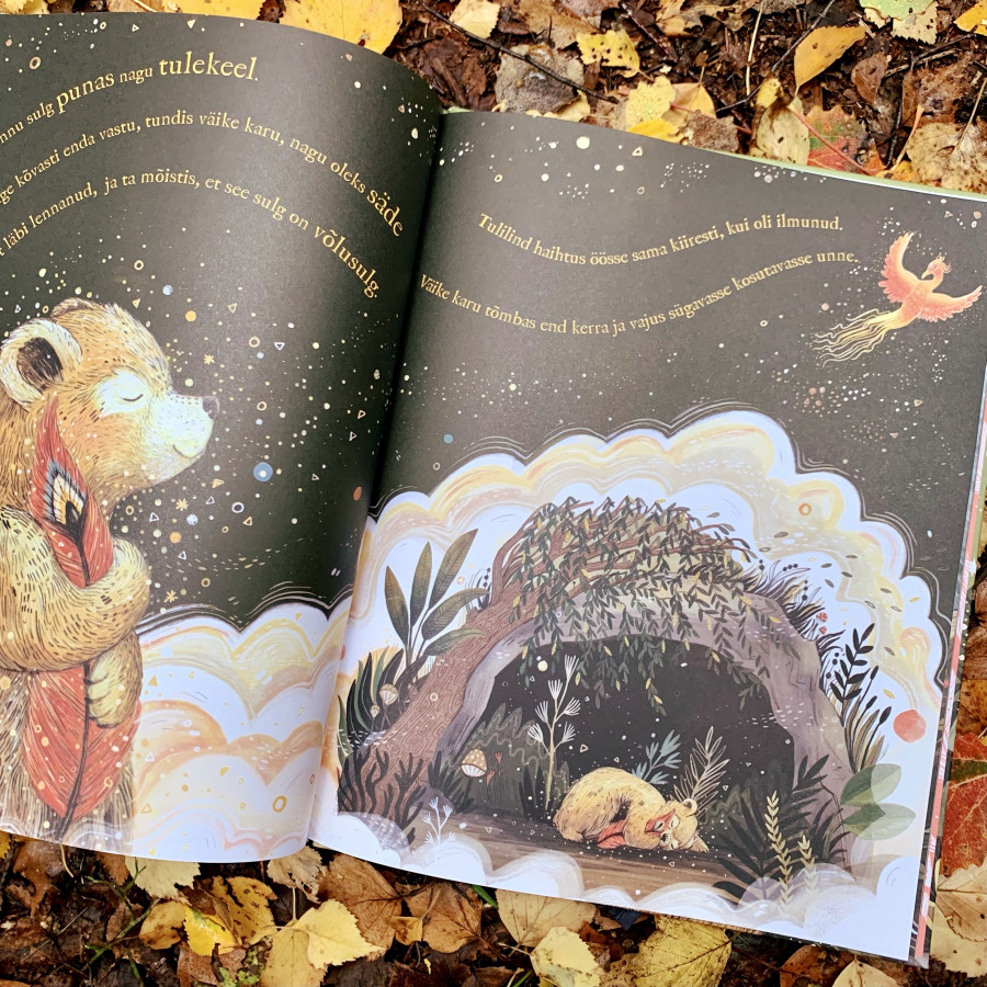Kuid siis ühel ööl laskub tema ette tulilind ja väike karu saab endale võlusule. Kas võlusulg aitab väikesel karul selgusele jõuda, kes ta päriselt on, või on vastus peidus tema enda sees ja tuleb vaid üles leida?